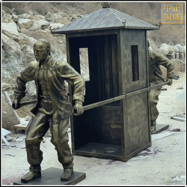 中正銅雕-抬轎子景觀人物雕塑、抬轎子景觀人物雕塑價格額、抬轎子景觀人物雕塑廠家,我公司集科研、開發(fā)設(shè)計、普通鑄造、一次性整體澆鑄、精密鑄造于一體。本公司技術(shù)力量雄厚,設(shè)備,不但重視中國青銅器原有的藝術(shù)風(fēng)格,還繼承了文物原有的藝術(shù)品味,在繼承和發(fā)揚古老文化的同時,更深一步為新老客戶定身量制各種銅制、鐵制工藝品等產(chǎn)品,曾多次受到寺廟長老和美術(shù)學(xué)院教授的好評。